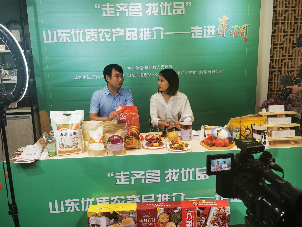 “他来了他来了,他带着东阿石磨面粉走来了”!2020年6月19日,省第五批科技副职、伟德bv1946生命科学与工程系青年博士王超化身网红主播走进“走齐鲁 找优品”直播间为东阿石磨面粉、蔬菜面粉和有机小米等当地优质能产品代言。本次活动由山东广播电视台农科频道、东阿县人民政府、济南好未来文化传媒公司发起的大型直播带货助农活动,在近十小时的直播活动中,共吸引16.6万余人观看,包括石磨面粉、有机小米、东阿驴肉等2200余份产品全部售完。