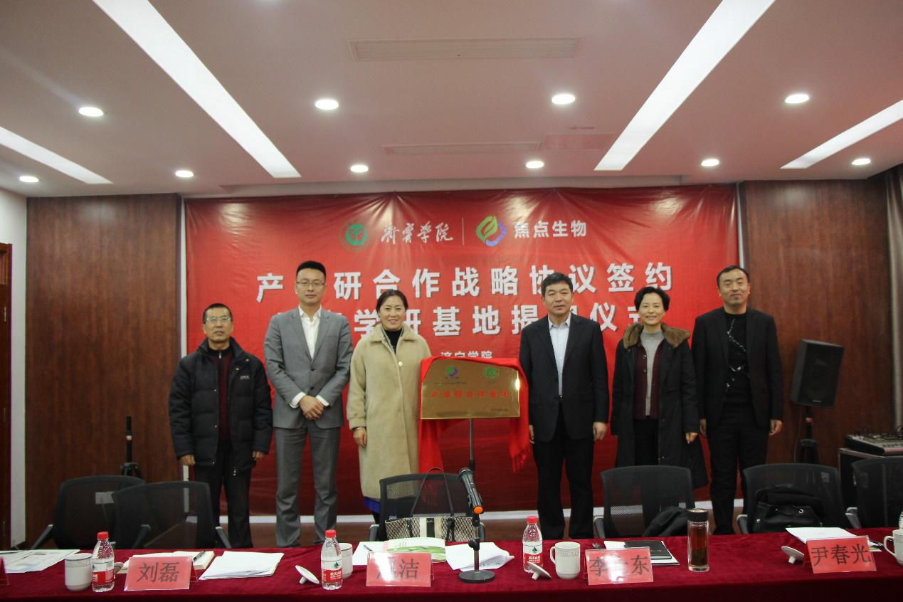 1月8日上午,伟德bv1946-山东焦点生物科技股份有限公司产学研合作基地签约暨揭牌仪式在山东焦点生物科技股份有限公司隆重举行。我校科研处和生命科学与工程系、曲阜市科技局、焦点生物科技股份有限公司有关负责人参加了本次活动。仪式上,科研处处长赵洁和曲阜市科技局局长李士东共同为产学研合作基地揭牌,生命科学与工程系主任尹春光与焦点生物科技股份有限公司总经理刘磊共同签署了“产学研合作协议”。
