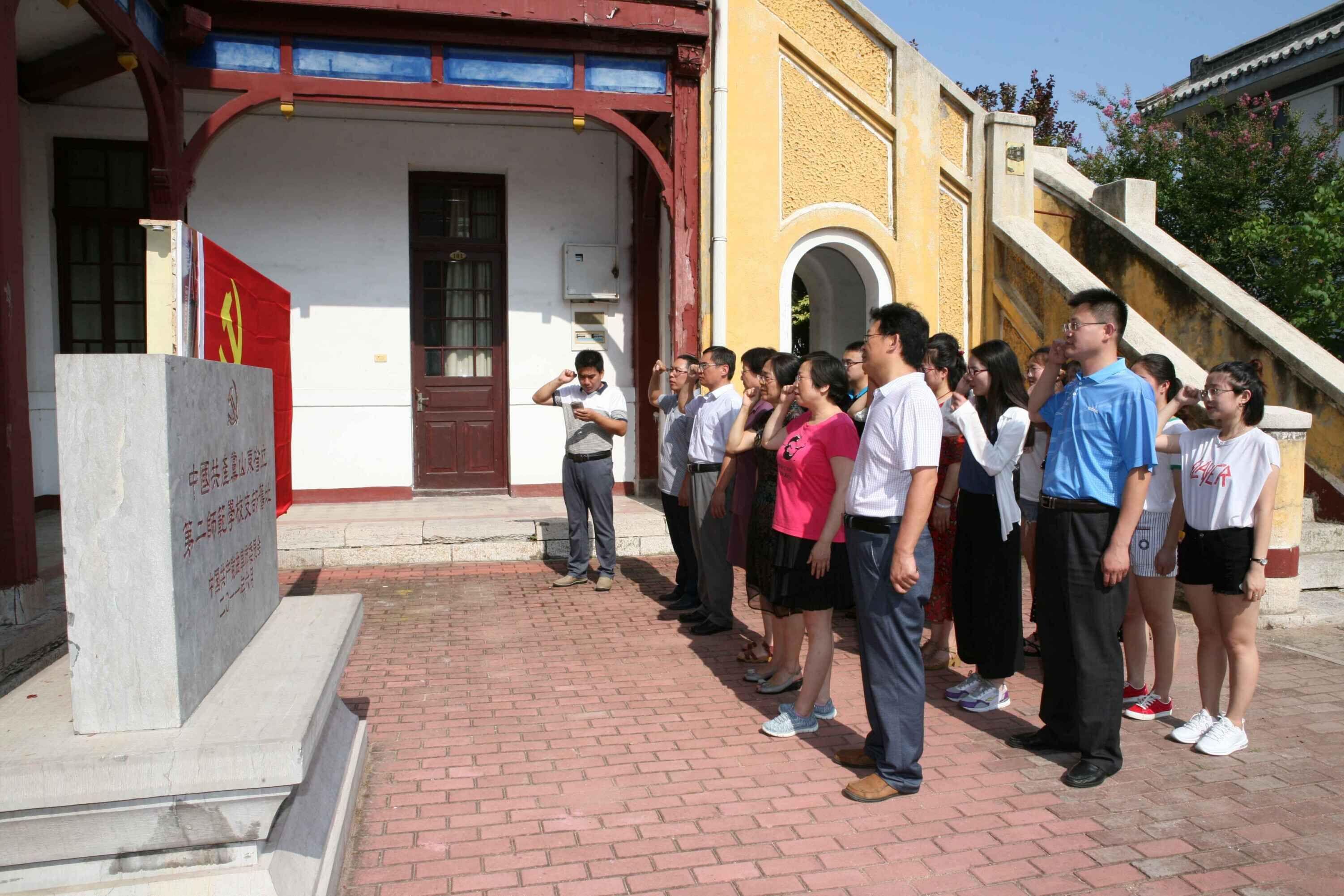 首先,系党总支书记孙文传达了学习“习近平新时代中国特色社会主义思想三十讲”的相关要求及关于规范党员干部网络行为的通知(济院党办〔2018〕12号)精神。期间,系教工党支部书记李湘利带领教工党员集体学习了《三十讲》第一讲“习近平新时代中国特色社会主义思想是党和国家必须长期坚持的指导思想”。然后,我系全体教工党员和学生党员亲临初等教育学院(曲阜师范校区),参观“中共山东省立红二师支部纪念馆”,接受红色革命传统教育。党员同志们在红二师纪念馆认真听取专业讲解,缅怀革命先烈,学习革命事迹。最后,全体党员同志在“中国共产党山东省立第二师范学校支部旧址”前,面向党旗,举起右拳,在教工党支部书记李湘利的带领下集体宣誓,重温入党誓词,回顾入党宣誓时的庄严承诺和坚定决心,进一步坚定理想信念,增强党员党性意识,激励党员同志们不忘初心,牢记使命,提升教书育人和服务社会水平,为教育事业的发展贡献力量。