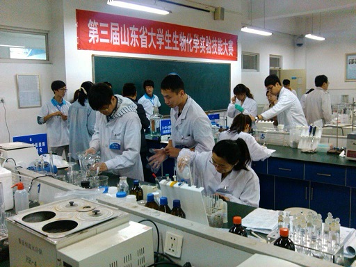 据悉,本届山东省大学生生物化学实验技能大赛预赛阶段共有来自山东大学、山东科技大学、山东农业大学、济南大学、青岛农业大学等近20所高校210余份作品参赛,经大赛组委会组织专家进行认真评审,共选拔出28件作品进入决赛环节。决赛历时两天,分为预试验和正式比赛两个环节;在正式比赛中,专家评审组成员全程跟踪各参赛队的实验操作过程,参赛选手在规定的时间内提交实验报告并参加答辩。