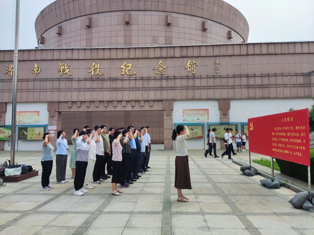 全体党员首先在济南战役纪念馆门前进行了庄严的宣誓,重温了入党誓词。铿锵有力的誓言表明了大家坚守初心、忠诚于党、立足岗位、团结奉献的坚定信念。
