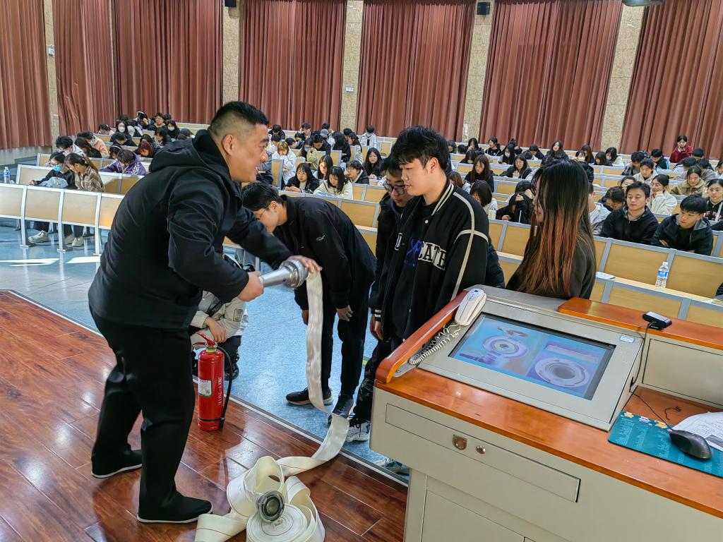 李和平结合近年来发生的典型火灾案例,运用图片资料,深入浅出地讲解了消防安全工作的重要性、消防安全知识、火灾处置方法及逃生自救知识等,希望同学们增强消防意识,掌握自救常识,将消防安全内化于心,外化于行。