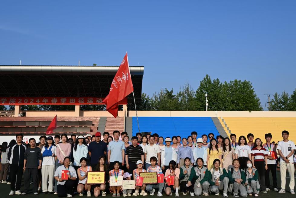 在全体师生的共同努力下,我院获得2024年春季田径运动会学生普通组团体总分第四名的好成绩,荣获“体育道德风尚奖”。
