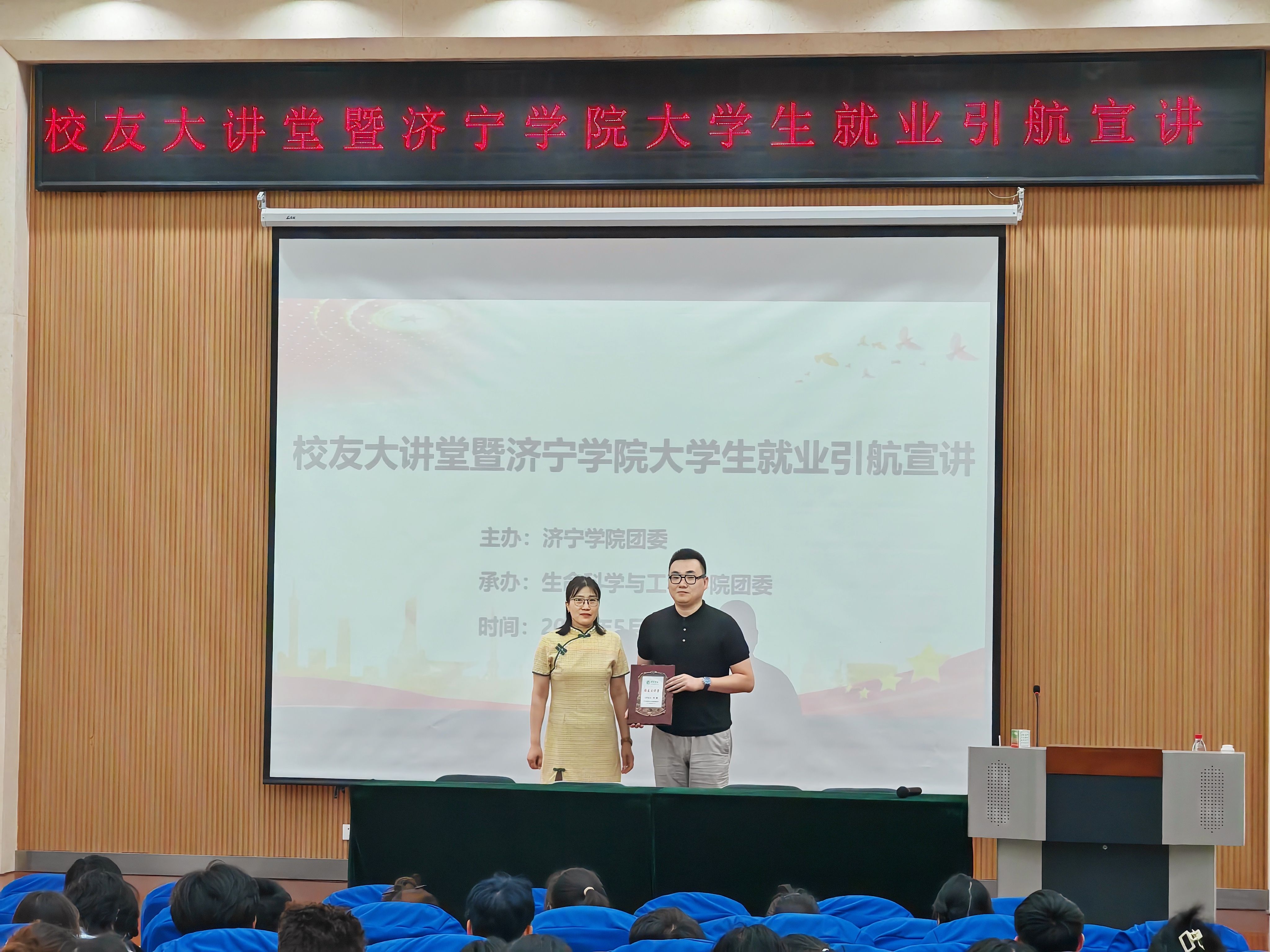 5月30日下午,我院在3号楼报告厅举办“校友大讲堂”暨大学生就业引航宣讲活动。优秀校友刘鹏应邀担任主讲嘉宾。学院副院长师艳秋、辅导员翟肖肖和300多名同学参加了活动。活动由翟肖肖主持。