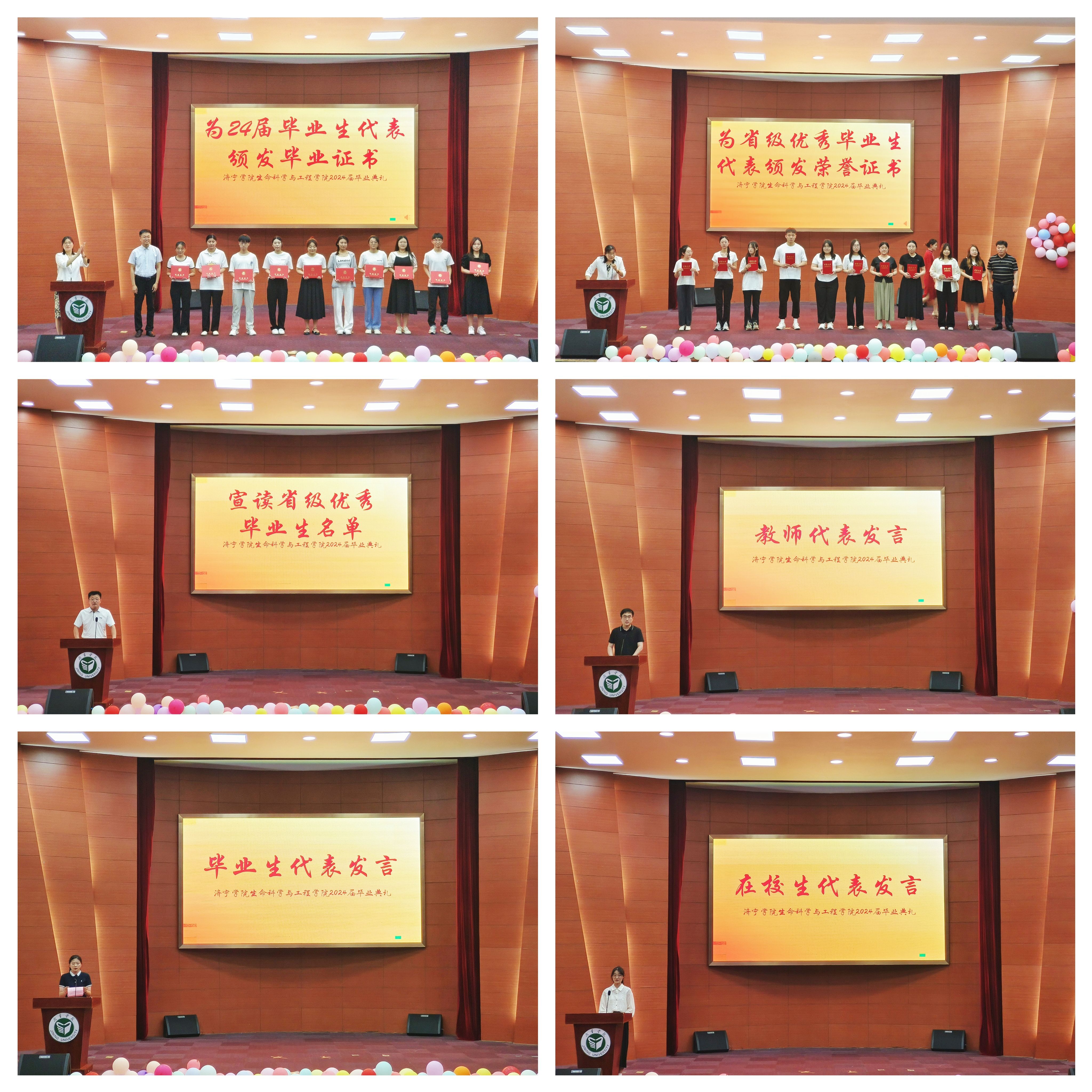 毕业典礼上,刘开伟宣读了2024届非师范类省级优秀毕业生名单,34名同学获此殊荣。李洪伟为省级优秀毕业生代表颁发荣誉证书;赵强为毕业生代表颁发毕业证书。