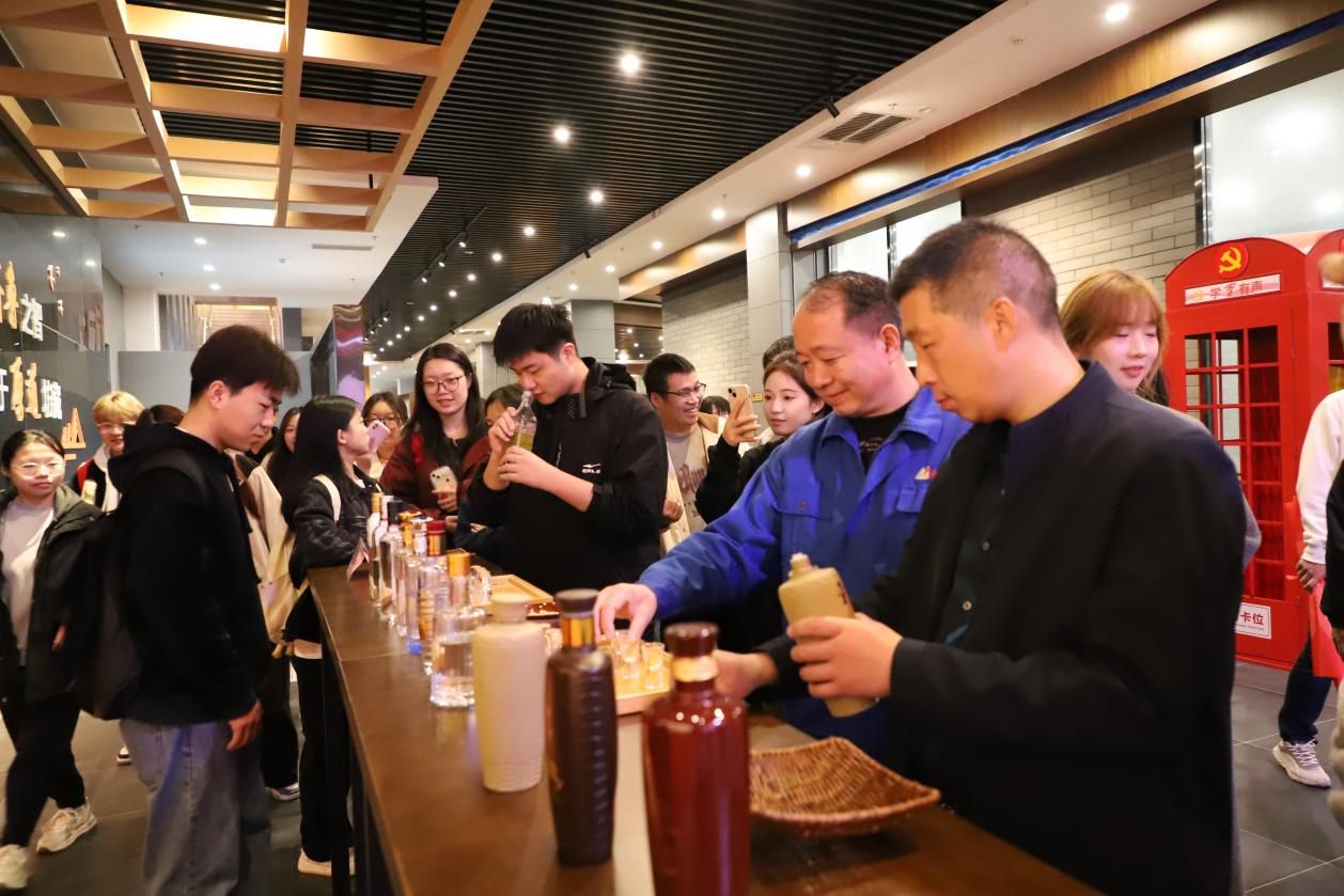 在企业工作人员的带领下,同学们首先参观了企业的酿造车间,亲眼目睹了从原料筛选到发酵、蒸馏、陈酿等一系列白酒酿造的工艺流程,了解了现代化的酿造设备和严格的质量控制体系,加深了对白酒酿造这一传统工艺的认识。