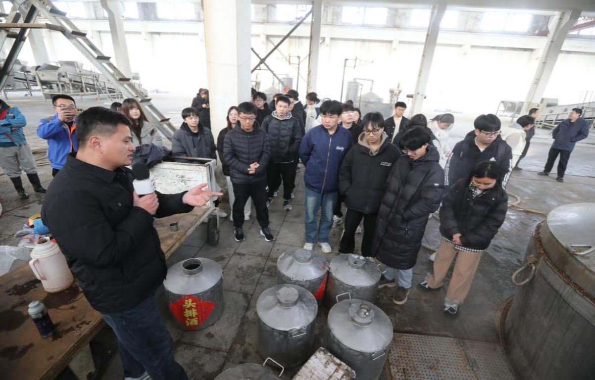 随后,同学们来到了酿造车间,亲眼目睹了现代化的酿造设备和严谨的酿造工艺,感受到了科技创新在传统酿造行业中的应用。车间内弥漫着浓郁的酒香,同学们仔细观察着每一个生产环节,不时与工作人员交流,了解酿造过程中的技术要点和注意事项。