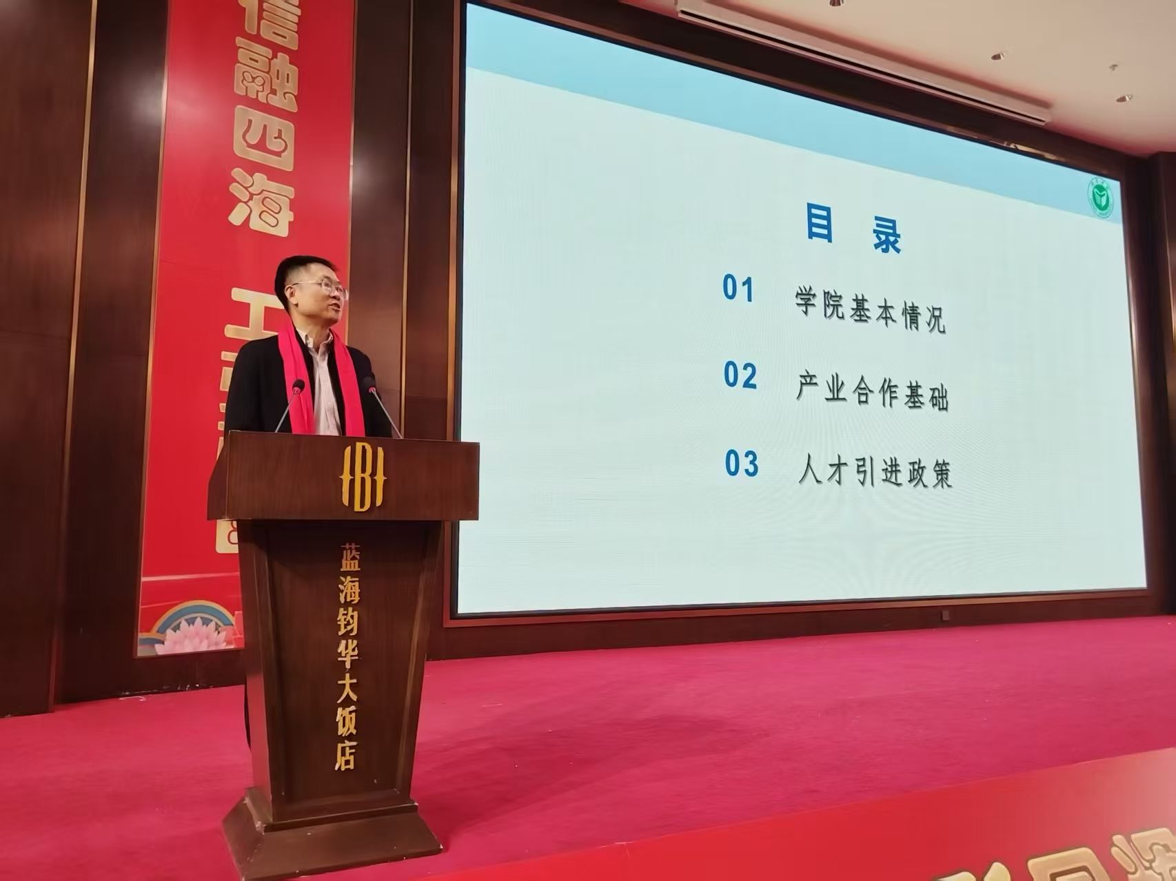 活动开始前,赵强就学院的专业、师资、人才培养和前期校企合作等情况向泗水县统战部部长张乙彬,县人大常委会副主任、工商联主席单英姿,县委统战部副部长、工商联党组书记程涛,县商务局局长马兆国等政府和部门领导做了介绍,并与济宁鸿润食品股份有限公司、山东无穷食品有限公司、山东盼盼食品有限公司、泗水县锦川花生食品有限公司等重点食品企业负责人进行了座谈,希望能与泗水食品企业在科技研发、平台建设、学生就业和高层次人才引进等方面开展深度合作。会上,赵强以“智汇泗水,食聚泉乡”为题,就学院基本情况、产学研合作基础、高层次人才引进政策进行了专门介绍。