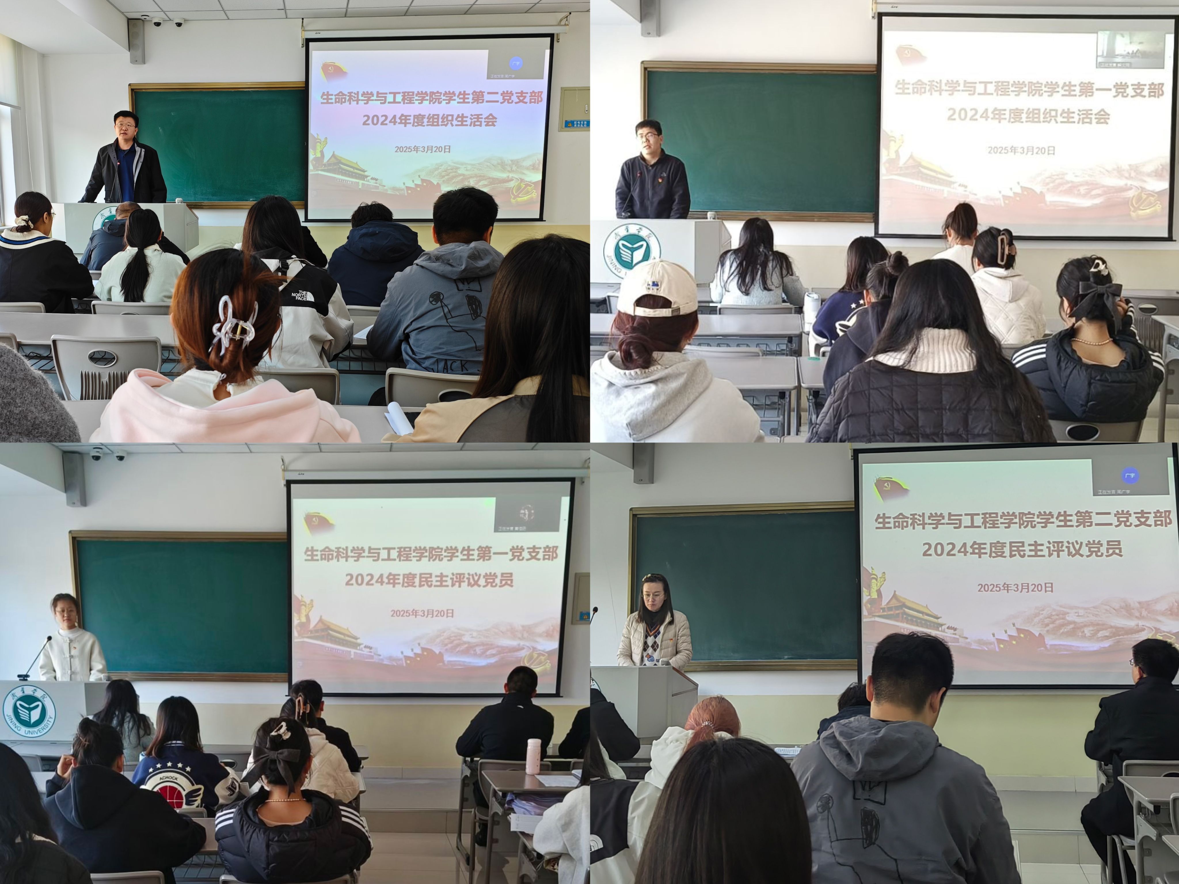 3月20日下午,我院学生第一、第二党支部分别在9A313、9A314通过线上线下相结合的方式开展组织生活会暨民主评议党员会。本次会议旨在帮助党员识别自身的不足与问题,并针对性地加以解决,全面提升党支部的组织力与党员队伍的战斗力。学生第一、第二党支部会议分别由党支部书记张丽翠、董洪秀主持,全体学生党员参加。