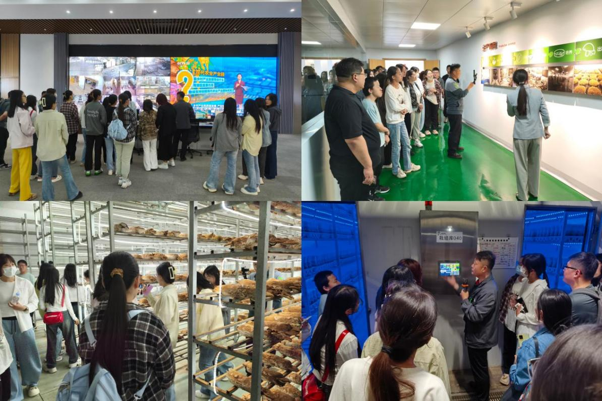 随后,师生前往邹城蘑菇科创园。该园区集菌种研发、技术推广、大数据分析与文化体验于一体,是当地推动食用菌产业升级的核心平台。园区负责人详细讲解了食用菌产业的数字化转型趋势,并强调企业对“专业+技术”复合型人才的迫切需求。在菌种实验室和产业文化展厅中,学生们直观感受到从传统种植到智慧农业的跨越式发展,对行业前景有了更深刻的理解。