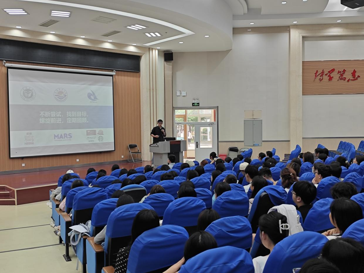 陈子豪以“不断尝试,找到目标,螺旋前进,定期回顾”为主题,分享了自己的成长经历。他回顾了从母校求学、上海海洋大学攻读硕士,到雀巢、玛氏等知名企业工作,再到2024年在东京海洋大学获得博士学位的奋斗历程。通过生动的故事,他讲述了成功背后的汗水与挫折中的坚持,并深情回忆了在伟德bv1946的青春岁月,引发了在场师生的共鸣。讲座尾声,他寄语学弟学妹:“勇敢走出舒适圈,去见识更广阔的世界,在探索中认识自己,审慎做出人生选择。”