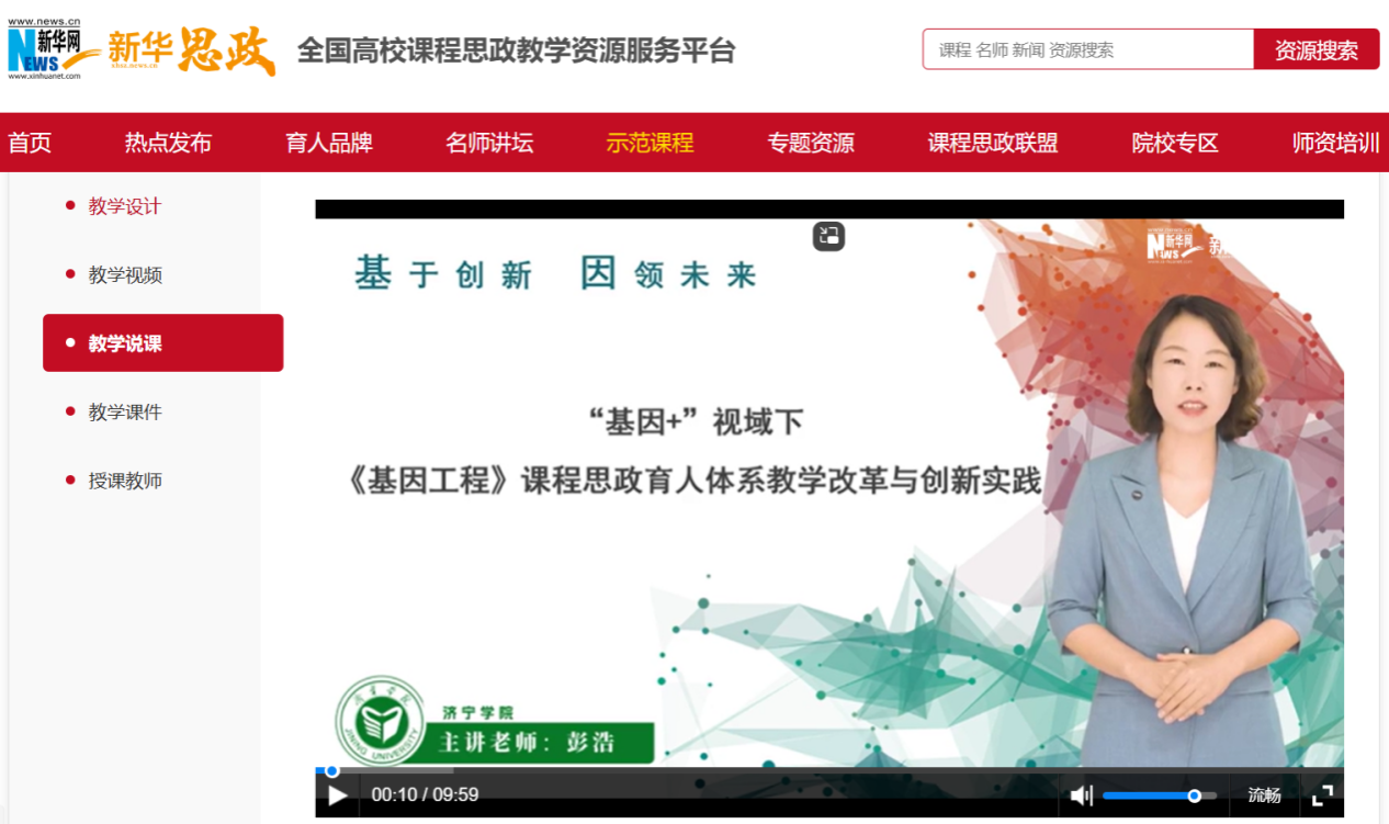 近日,我院彭浩老师主讲的《基因工程》课程上线新华网“新华思政——全国高校课程思政教学资源服务”平台,全面开放共享教学设计、教学视频、教学说课、教学课件等教学资源,标志着我院课程思政建设工作取得新的进展。