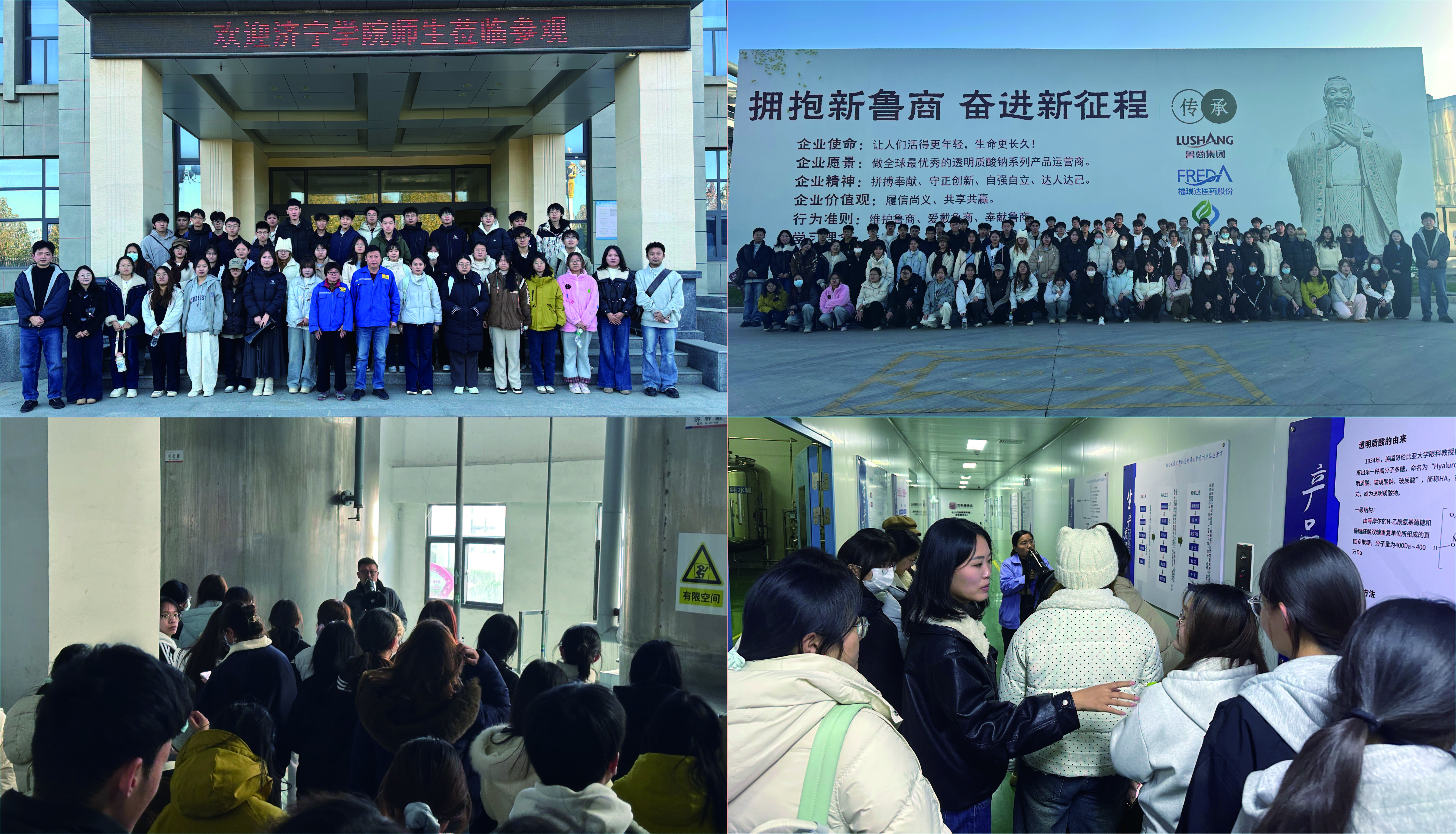 11月27日,实习队伍再度出发,学生们首先参观了曲阜市天利药用辅料有限公司,深入学习β-环糊精生产工艺及技术要点,还与讲解员就实验室小试与工厂工业化生产的区别和关联展开探讨,明确了小试工艺探索与工业化生产规模化、标准化要求的核心差异,实现了专业理论与产业实践场景的衔接。随后赴山东焦点福瑞达生物股份有限公司,在讲解员的引导下,学生们系统了解透明质酸钠的生产流程、质量管控体系及其在多领域的应用,切实理解生物制药产品从实验室研发到市场化应用的完整路径。