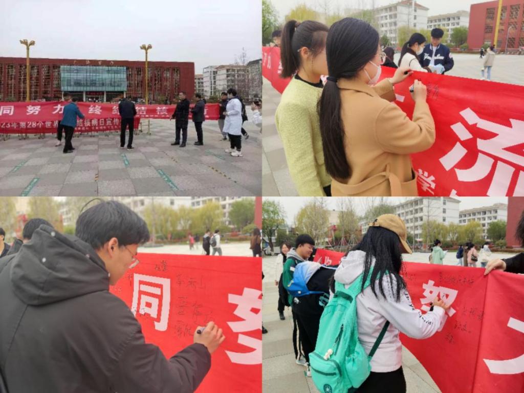 活动现场,广大师生纷纷在宣传横幅上签写自己的名字,表示要积极参与,共同努力做好防治结核病的宣传工作,为终结结核病贡献自己的力量。