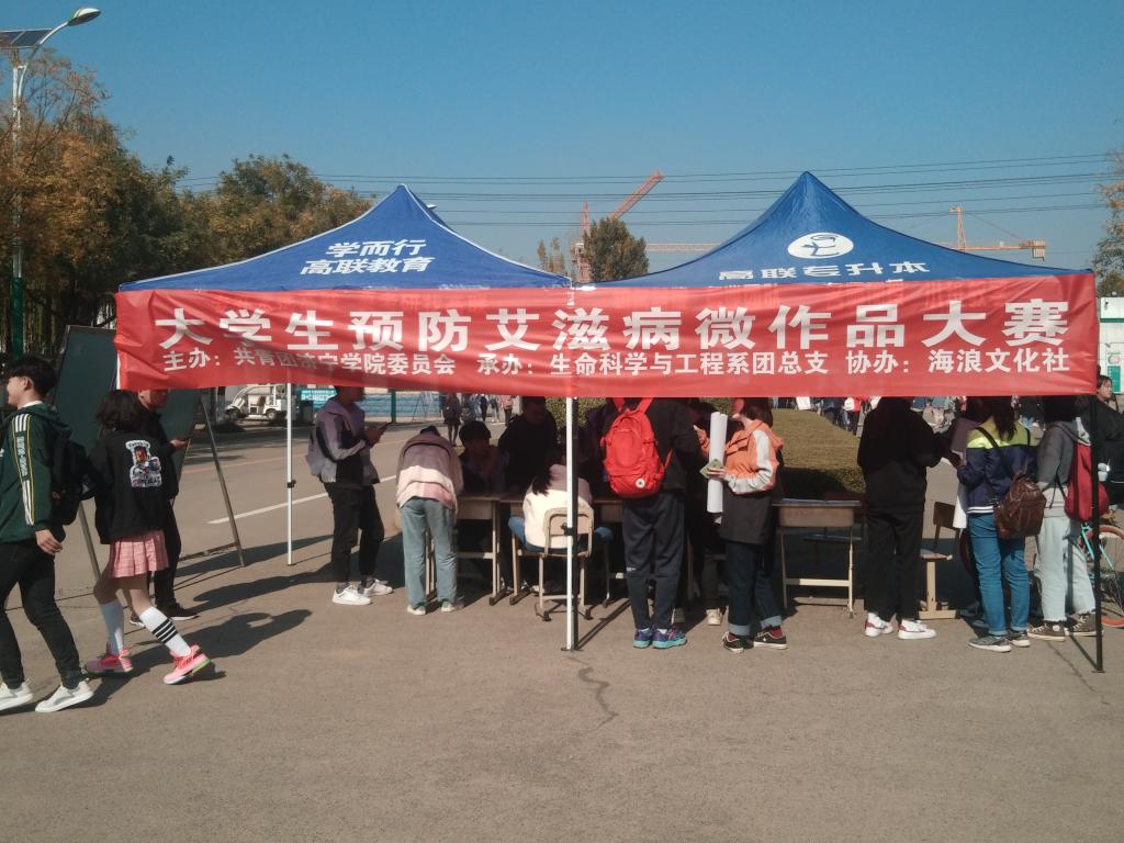 11月4日至6日,生命科学与工程系在校北门顺利举办大学生预防艾滋病微作品大赛宣传活动。此次活动由共青团伟德bv1946委员会主办,生命科学与工程系团总支承办,海浪文化社协办。