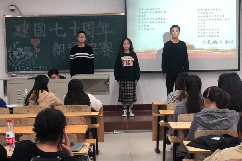 10月14日晚7:00,“礼赞祖国七十华诞,我把忠心献给祖国”朗诵比赛决赛于九号楼C406室顺利开展,团总支负责老师刘学文出席了本次活动。
