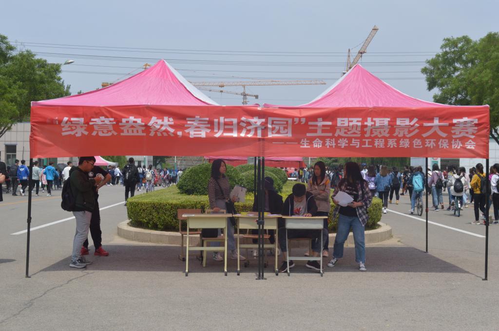 5月7日,生命科学与工程系绿色环保协会在校北门举办“绿意盎然·春归济园”主题摄影大赛宣传活动。