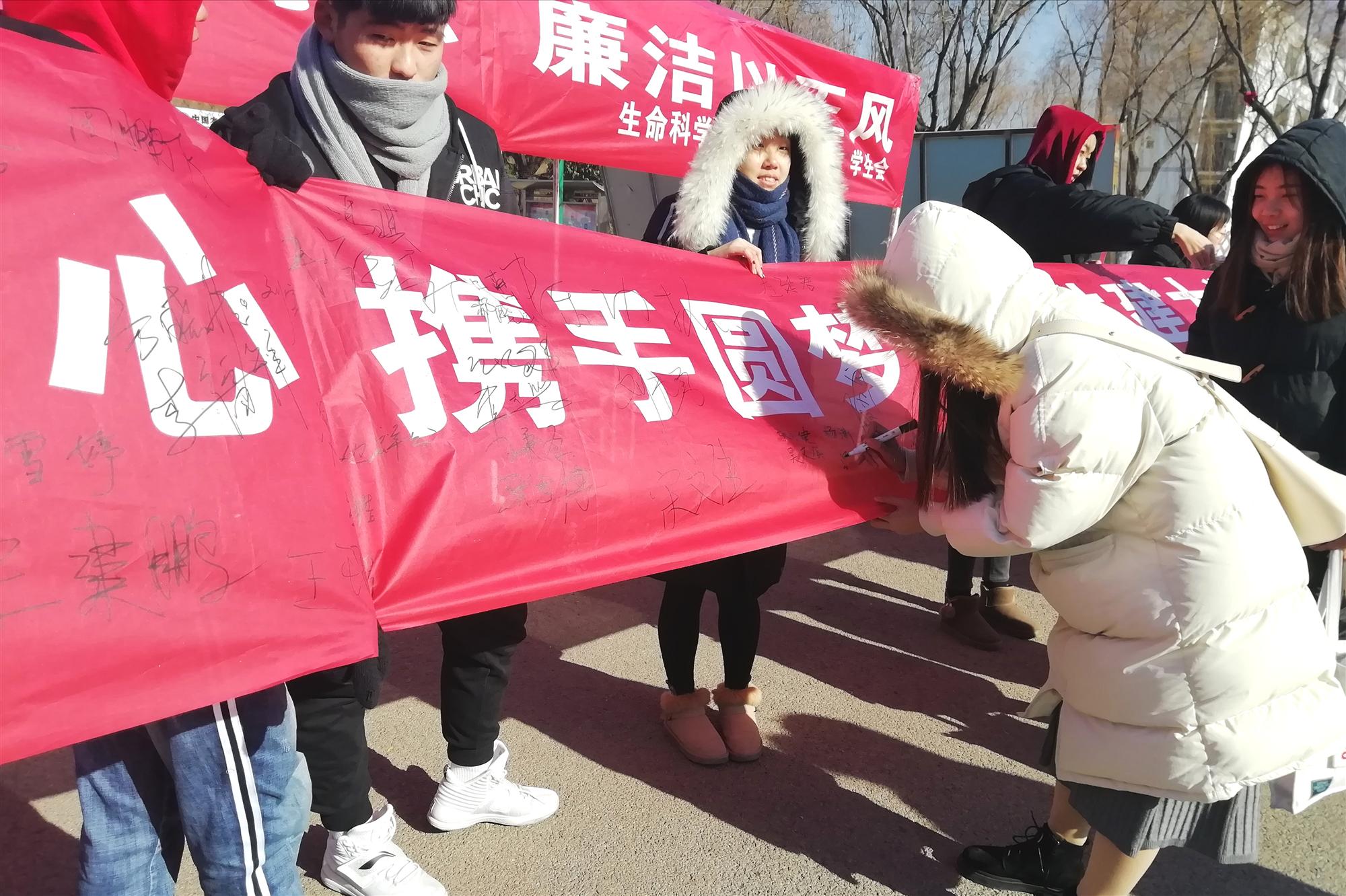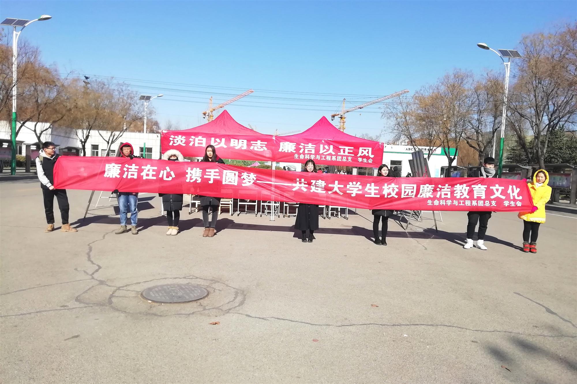 12月28日,生命科学与工程系团总支、学生会于校北门顺利举办以“淡泊以明志,廉洁以正风”为主题的廉洁书法展暨签字仪式。