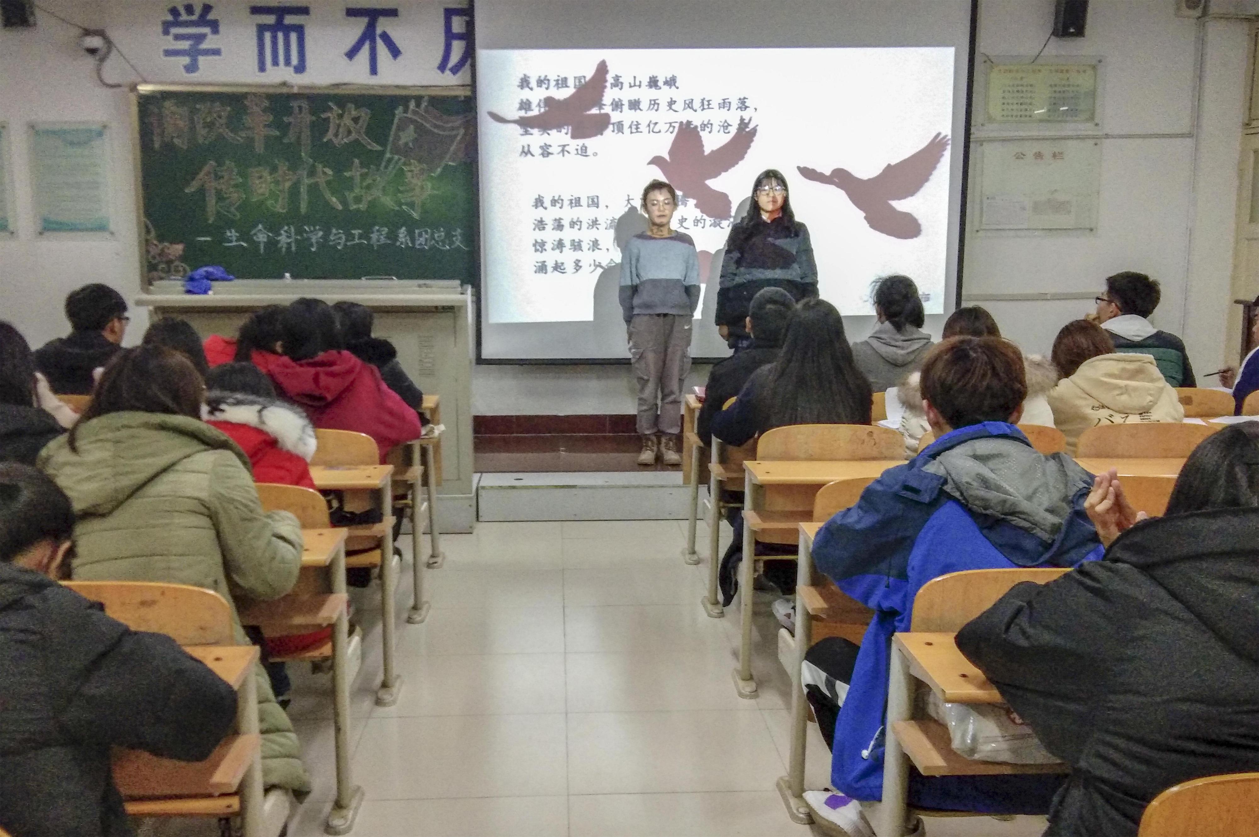 近日,生命科学与工程系在理科楼A405室举办了第八届大学生文明修身工程系列活动之“诵改革开放,传时代故事”朗诵比赛。党总支副书记孔翠、团总支书记刘学文以及各班同学代表参加了此次活动。