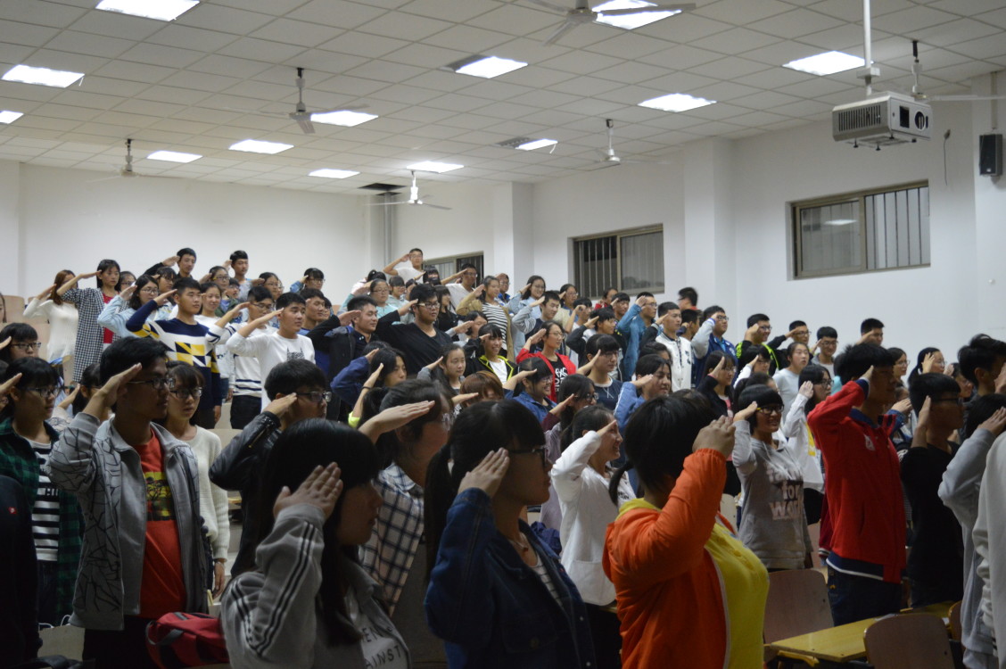 为在学生中形成良好风气,引导同学们坚持理想信念。生命科学与工程系于9月29日晚7:00在理科楼D201室举行了向国旗敬礼宣誓活动主题班会,活动主题为“加强爱国精神学习,领会核心价值意义”,活动口号是“精神学习,丰富自我”,活动对象为2016级全体同学。