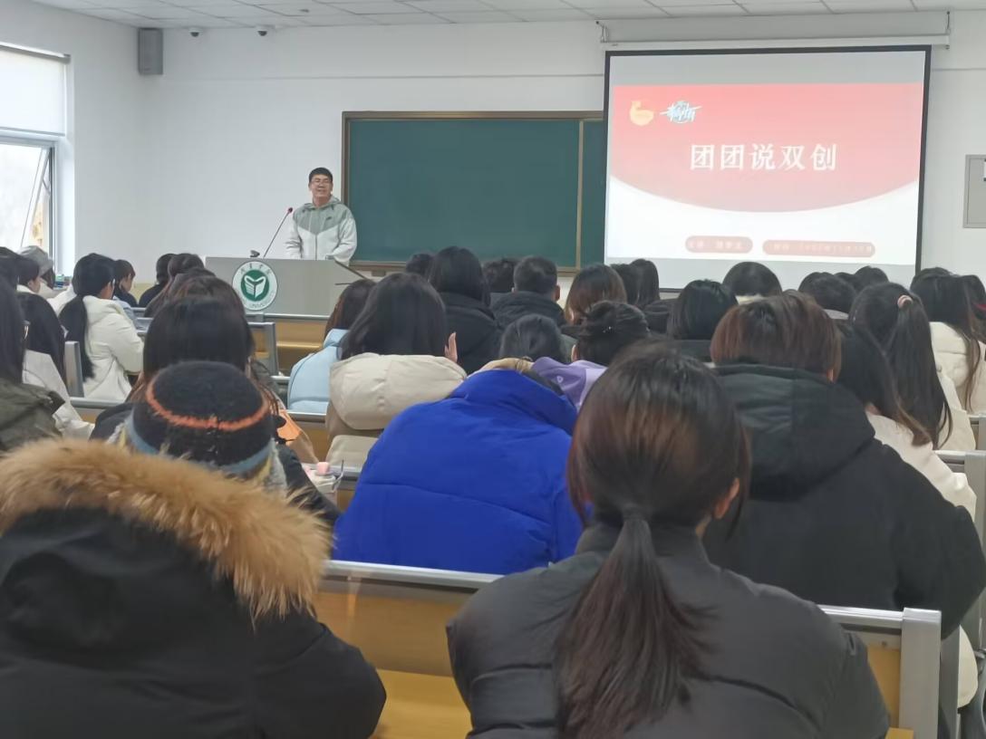11月30日,我院团委在9号楼C305举办“团团说双创”活动。活动由院团委书记刘学文主讲,近100名学生代表参加。