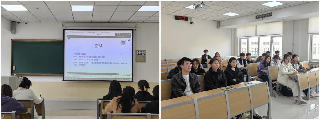3月21日下午,我院通过线上线下相结合的方式成功举办考研复试经验分享会,分享会邀请我院2023届优秀校友于露露、陈尚静、于芸芝、宋美佳等人分享考研复试经验,近70名考研同学参加,院学生会主席孙航主持。