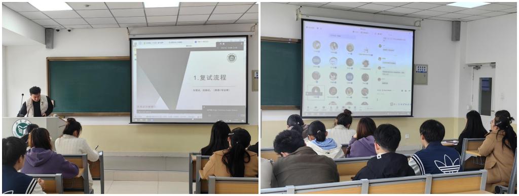 陈尚静从专业基础知识考核、综合能力考核等方面的复试技巧进行了经验分享,强调要加强有关专业课的学习,提醒学弟学妹们面试时注意着装要简单大方得体。