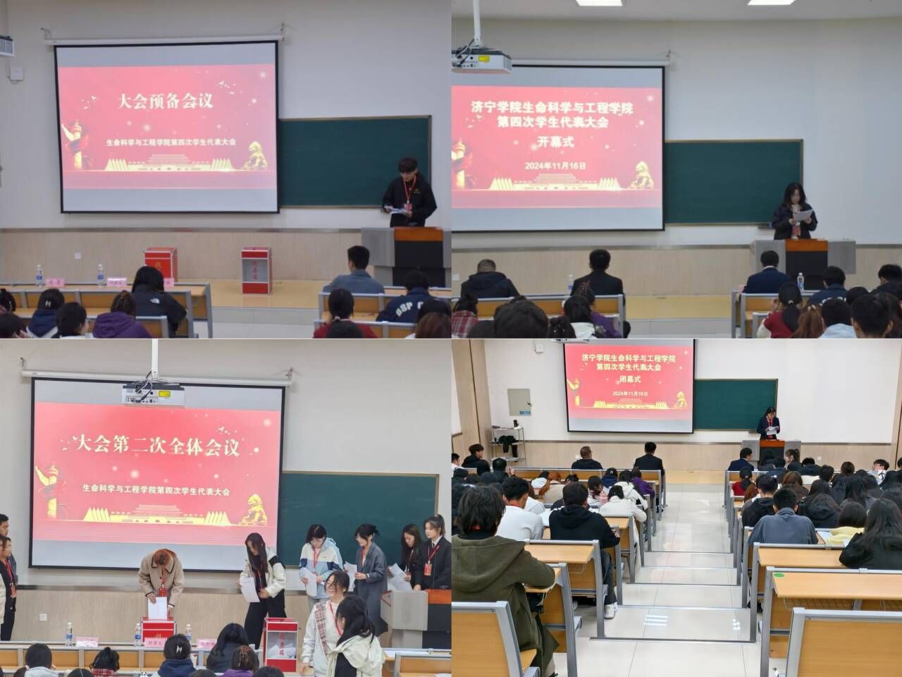 11月16日,我院在9号楼D201教室召开第四次学生代表大会。院党委副书记刘开伟出席会议并讲话,团委书记刘学文、辅导员周鲁和90名学生代表参加了会议。本次会议由院学生会学生干部朱昱霖主持。