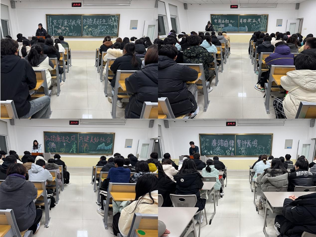 活动中,各班团支书带领同学们一起深入学习了习近平总书记关于全面从严治党、党风廉政建设、廉洁文化建设的重要论述,观看了习近平总书记在二十届中央纪委三次全会上发表重要讲话的相关视频及其他有关反腐倡廉的视频。