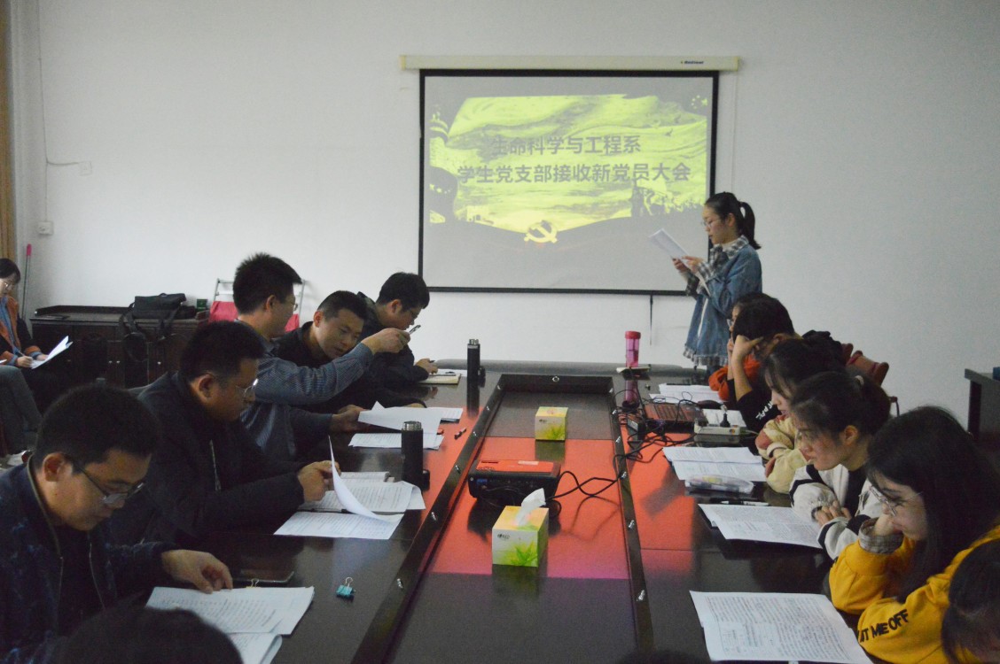 11月3日上午,生命科学与工程系学生党支部在理科楼A408会议室召开了学生党支部党员发展大会。系学生党支部全体同志参加了会议,系党总支副书记岳现超和系党总支组织员杜昕昕列席。