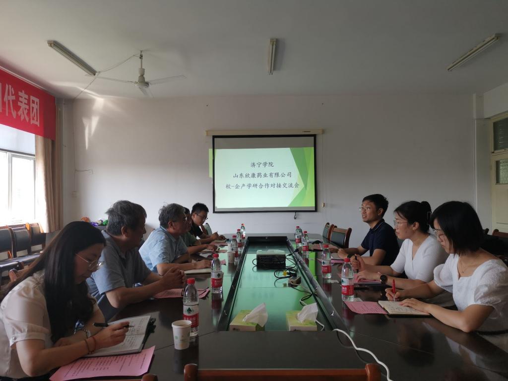8月23日上午,山东欣康药业有限公司总经理瞿水忠、研发顾问李桂华、副总经理陈成、闫猛、张会侠一行5人来我院考察交流,学院副院长赵强,院长助理杜昕昕、生物制药专业主任师艳秋及常彦红博士参加活动。