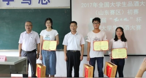 2017全国大学生品酒大赛(山东赛区)初赛暨首届“红太阳杯”济宁大学生品酒大赛于9月27日在伟德bv1946举行。济宁市轻纺办主任李广吉出席比赛并作致词,伟德bv1946副院长刘德胜、生命科学与工程系主任尹春光、书记孙文、办公室主任刘开伟、生命科学与工程系酿酒工程专业主任林范学、专业骨干冯磊等,以及红太阳集团总经理任志刚、常务副总任宪礼、销售副总楚贵远、技术总监孙守营等出席比赛。