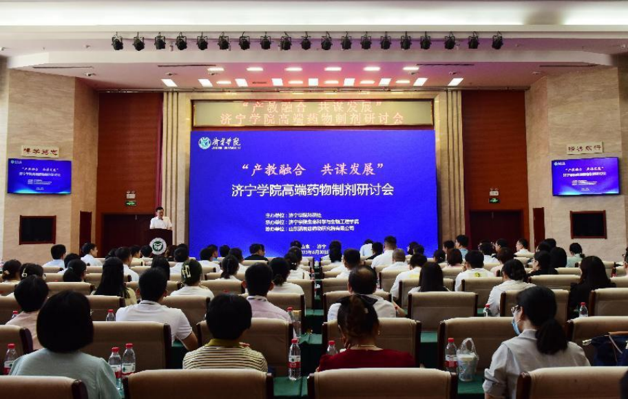 伟德bv1946科研处处长宋文路、山东焦点福瑞达生物股份有限公司、山东瑞银生物工程有限公司、曲阜市天利药用辅料有限公司、山东欣康药业有限公司、山东孔府制药有限公司等企业界代表、伟德bv1946生命科学与生物工程学院领导班子成员、伟德bv1946靶向药物研究院负责人和我校师生代表共近150人参加了此次活动。