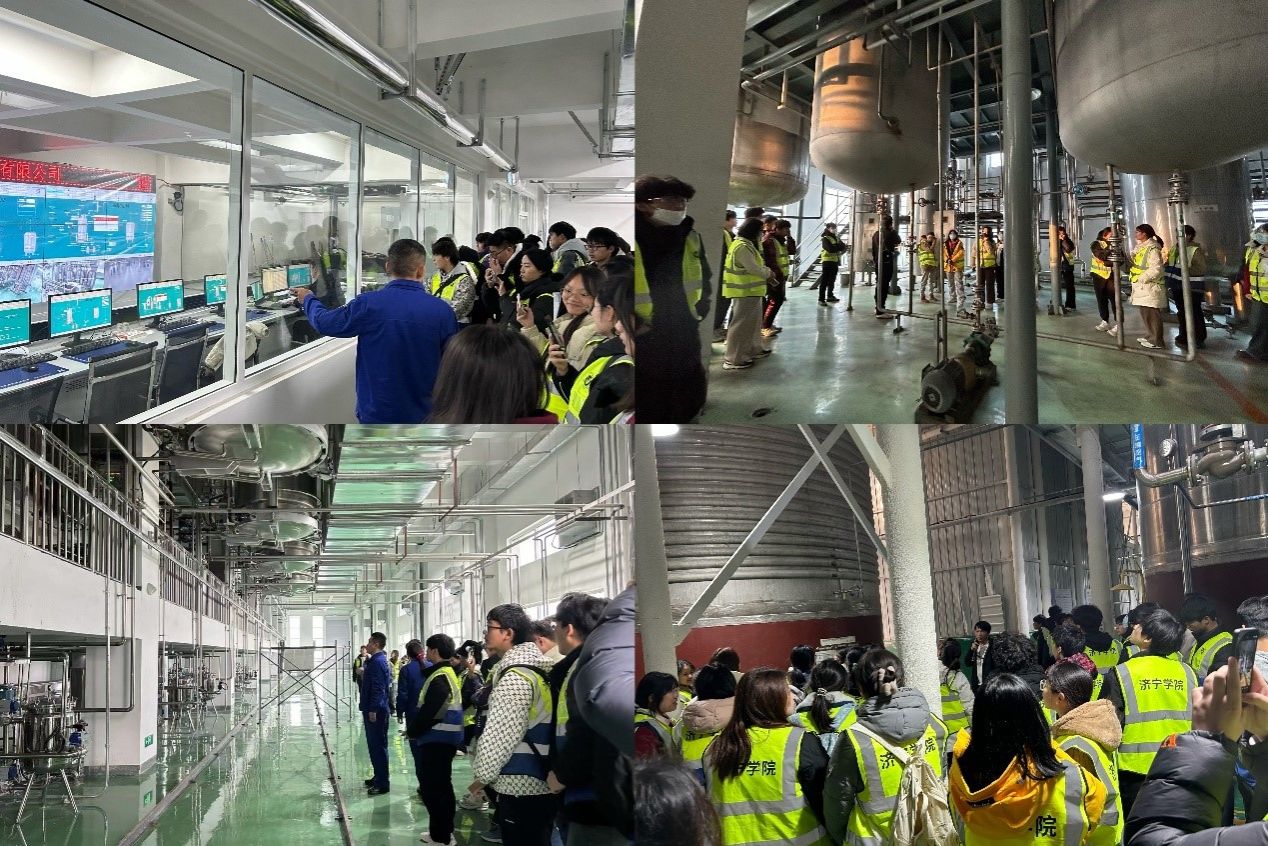 本次活动由生物制药专业教研室与生物工程专业教研室的负责人以及青年教师带队,学生们首先参观了山东康源堂药业股份有限公司,在生产车间,讲解员们对中药饮片从原料到成品的完整生产链条进行详细讲解,使同学们对中药饮片生产的工艺流程、设备、环境等有了深入而清晰的认知。紧接着,一行人移步至曲阜市天利药用辅料有限公司,在企业负责人的悉心讲解下,学生们深入学习了β-环糊精的生产工艺和技术细节。最后,队伍抵达山东焦点生物科技有限公司,在讲解员的引导下系统地学习了透明质酸钠的生产流程、质量控制体系,还对其在多个领域的广泛应用有了深刻认识。